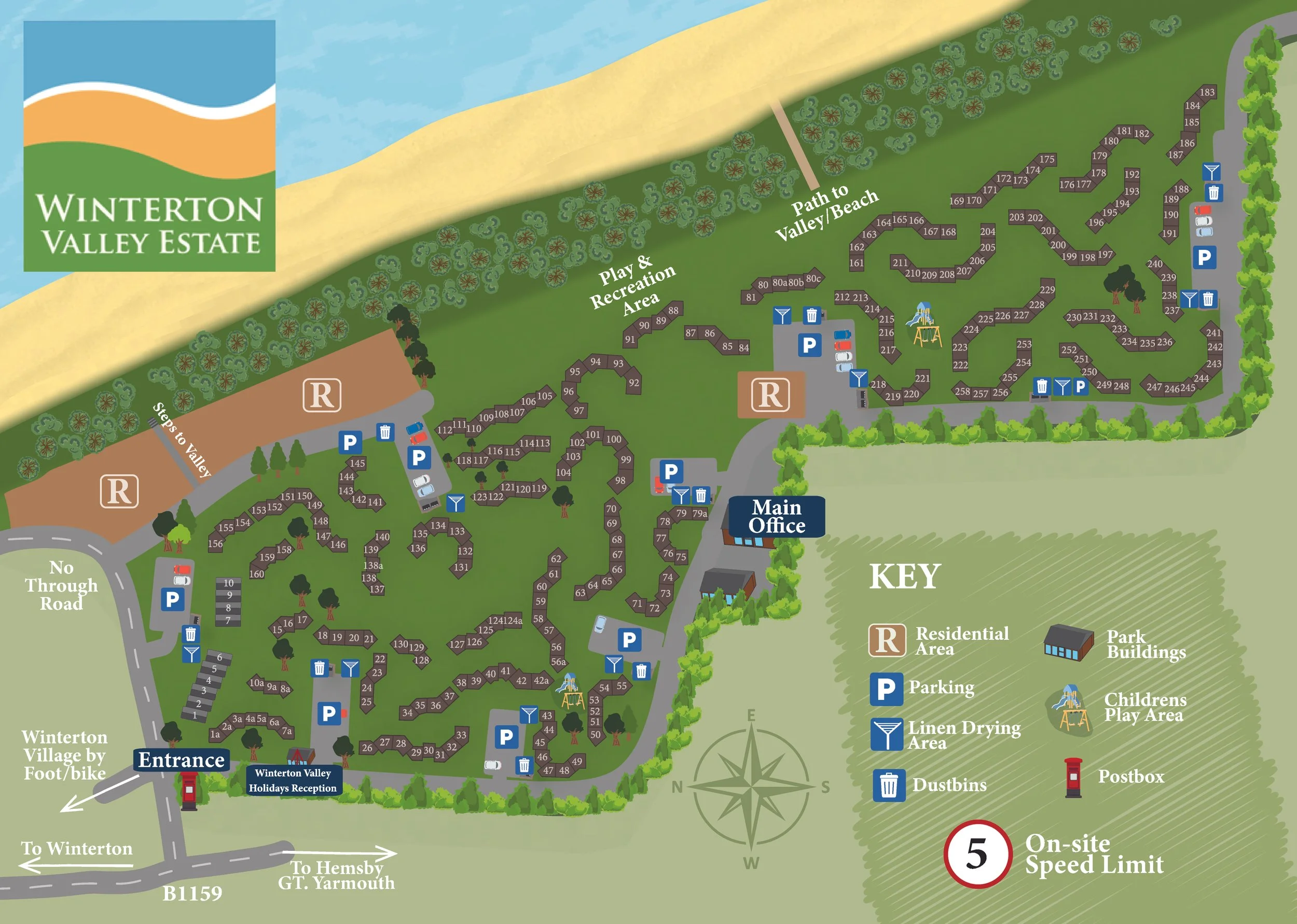 Our estate map gives you a clear overview of Winterton Valley Estate and how everything fits together, from chalet locations and pathways to green spaces and access points. It’s designed to help you familiarise yourself with the layout of the park, whether you’re planning a visit, exploring ownership opportunities, or simply getting a better feel for this peaceful coastal setting.
